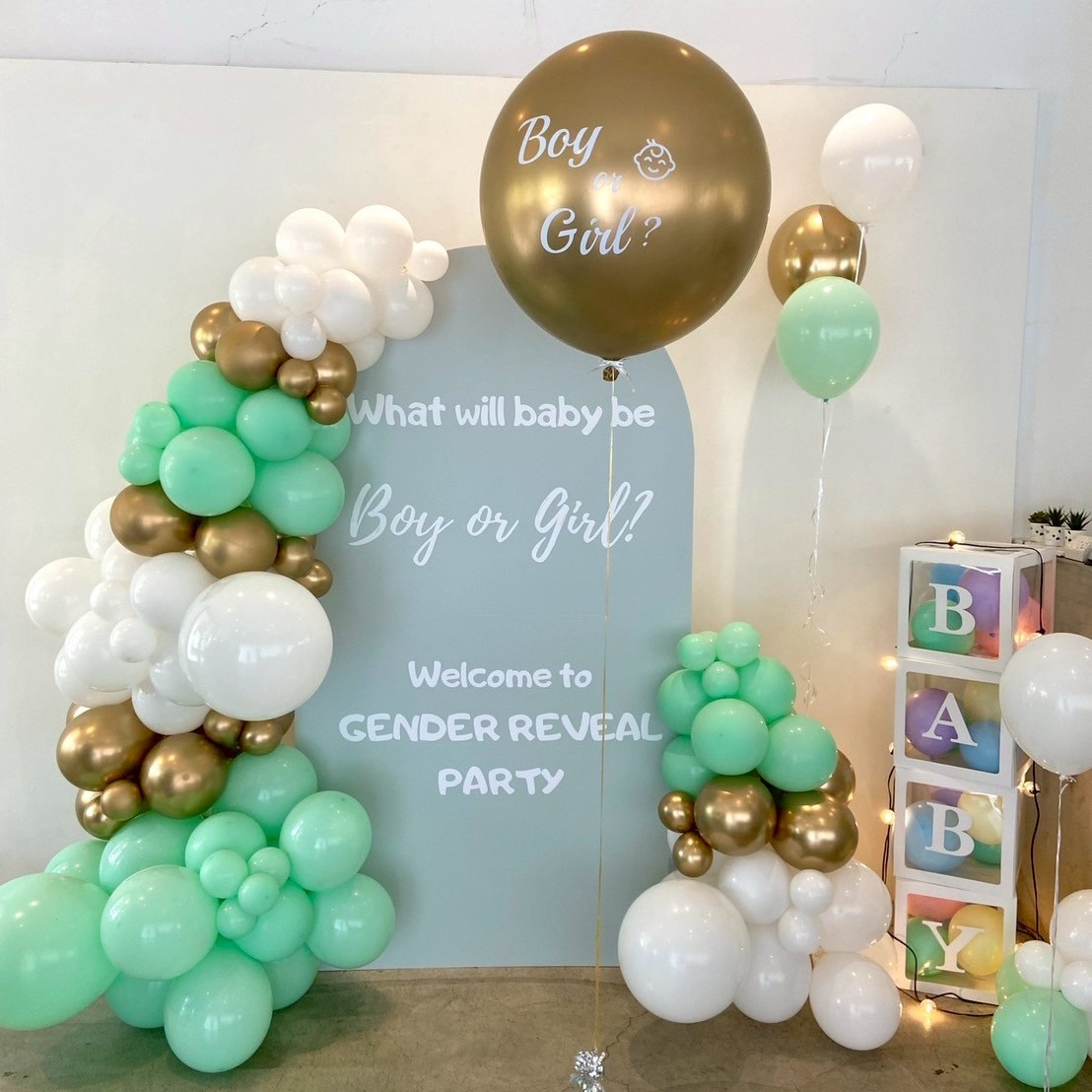 當然也有不少的爸爸媽媽,會特意訂製空飄汽球串,在性別揭曉派對(Gender Reveal)加強大家的驚喜感,在性別揭曉的瞬間瞬間點燃全場歡呼。如同: 清新薄荷 甜甜馬卡龍綠 性別揭示