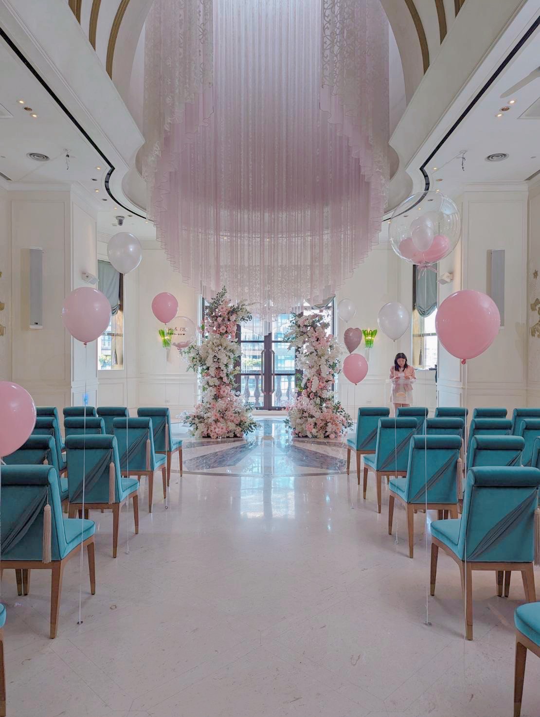 - 優雅婚典 × 緞帶設計款 × 鮮花氣球佈置,鮮花、緞帶和氣球的搭配,典雅求婚是文靜的你喜愛的方式。