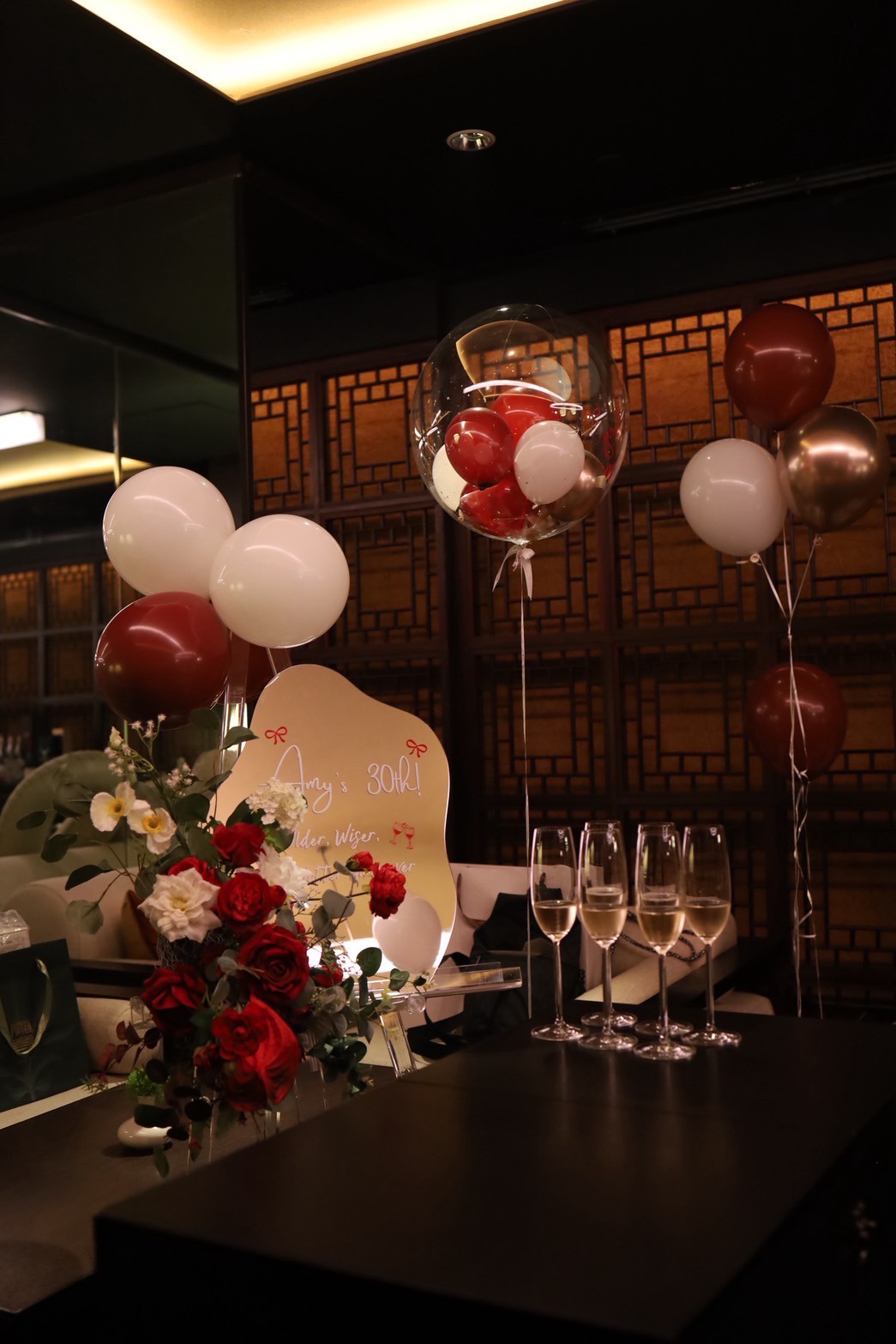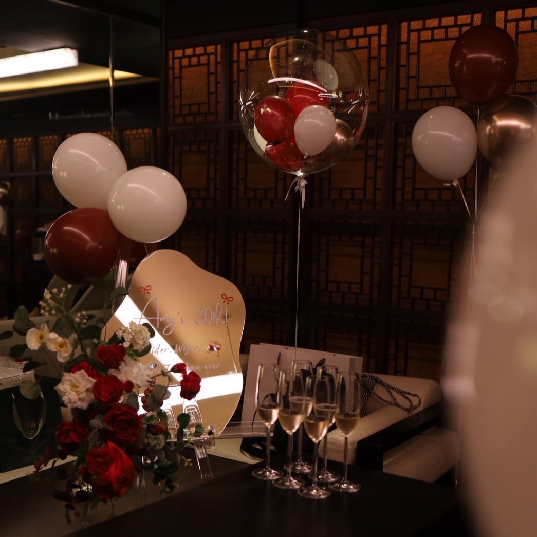 酒紅微醺,輕熟高質感氣球配色,沒有拍照背板也一樣很美的生日宴,一起渡過30歲生日氣球派對