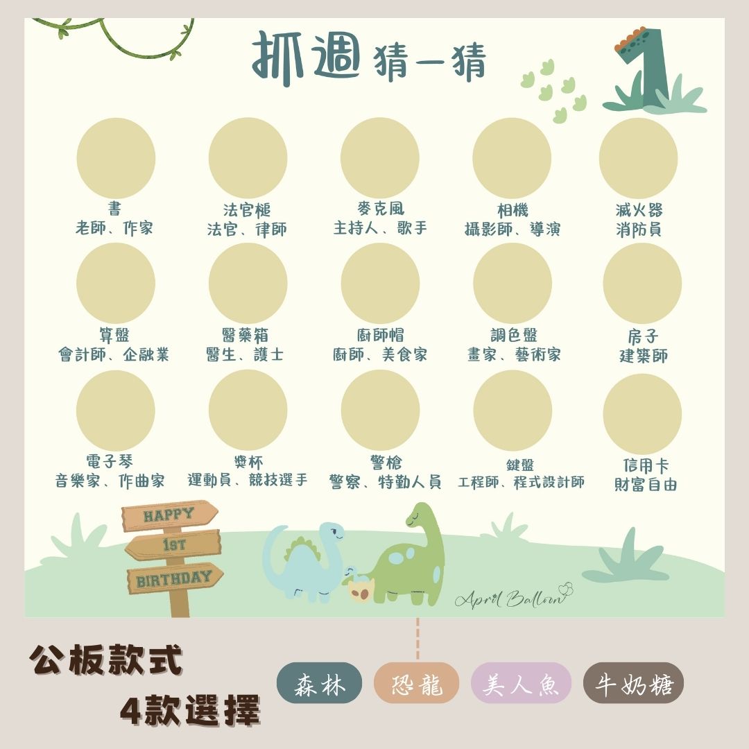 可搭配租借抓週道具+地毯 另有販售客製化寶寶姓名&寶寶人像預測板,私訊報價